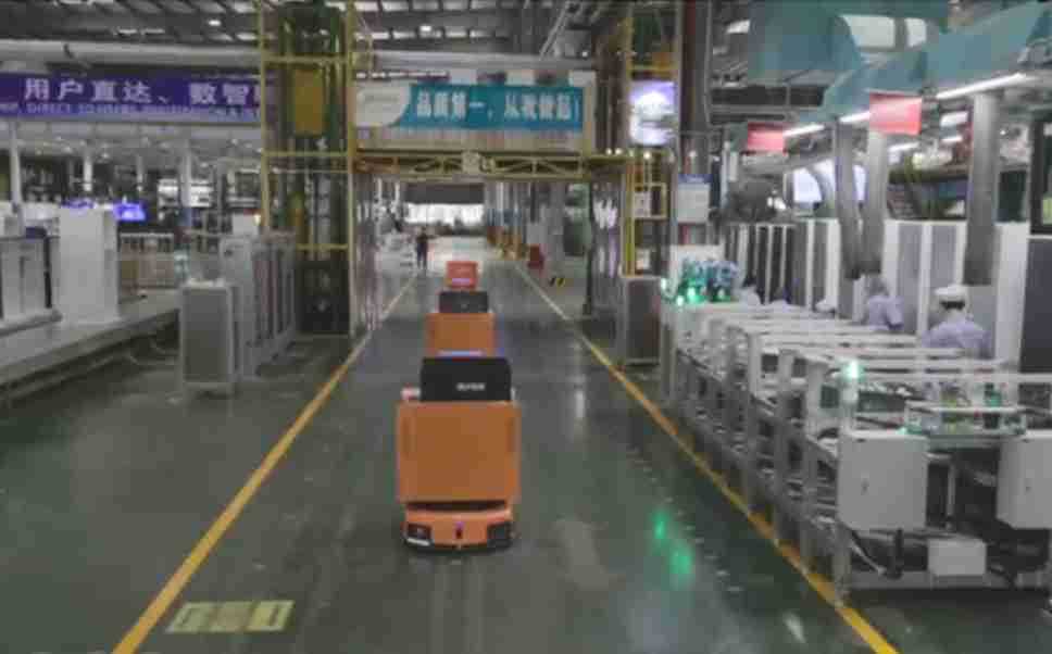 为车载冰箱物流配送打造的智能解决方案,,包含产中物流通过潜伏举升AMR搬运至线边,,,产后成品物流智能仓储,,,流程包含产中物流智能齐套入库,,,线边安灯叫料AMR智能配送至线边,,,,成品入库、、出库,,,,通过无人堆高车机器人,,智能仓储管理替代人工作业管理,,,实现更高存储、、、更高效率、、、更具柔性化的解决方案。。。。